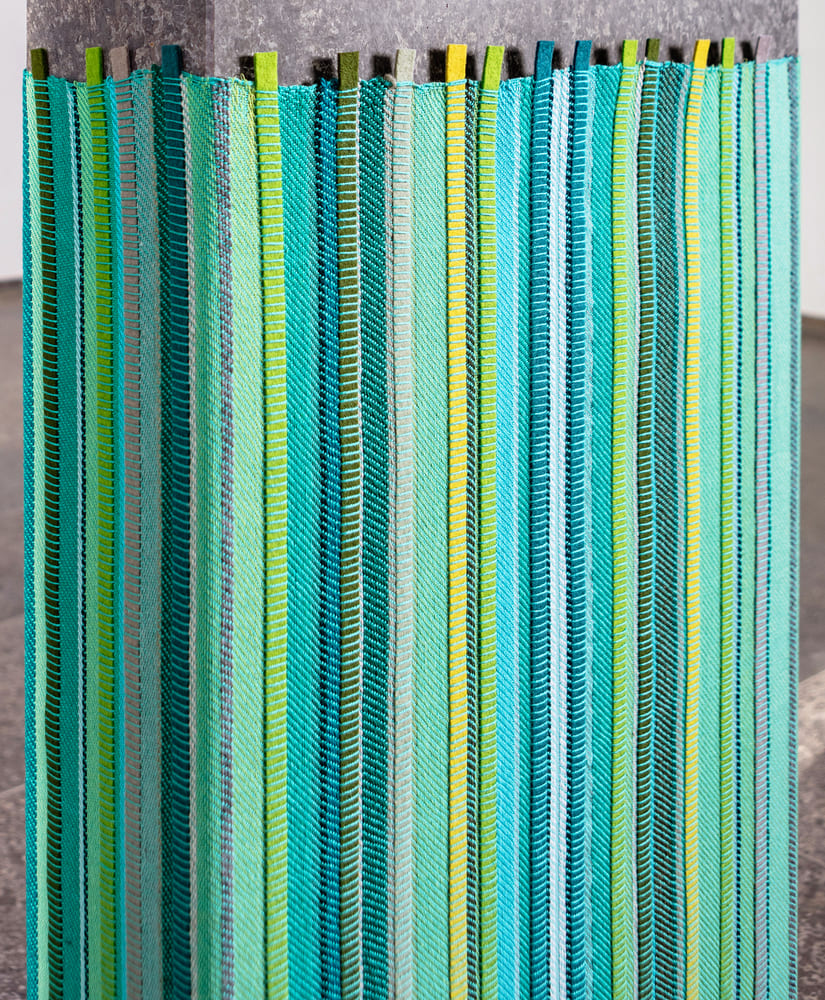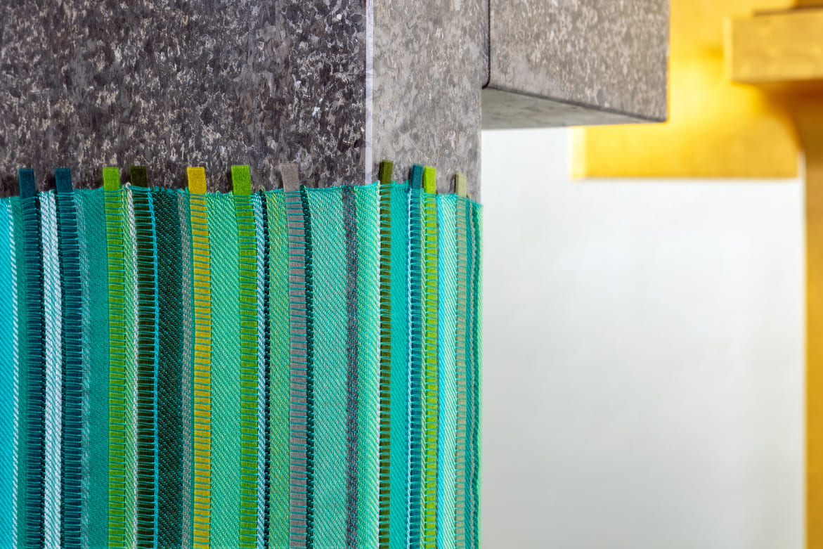 GRÜNE LINIEN (Líneas verdes) | jacquard tejido a mano, algodón orgánico + fieltro + hilo de pescar | 75 x 120 x 0,5 cm | paramento para el ambón | Martin-Luther-Kirche Borken | Alemania | Anna Gawronski | 2019