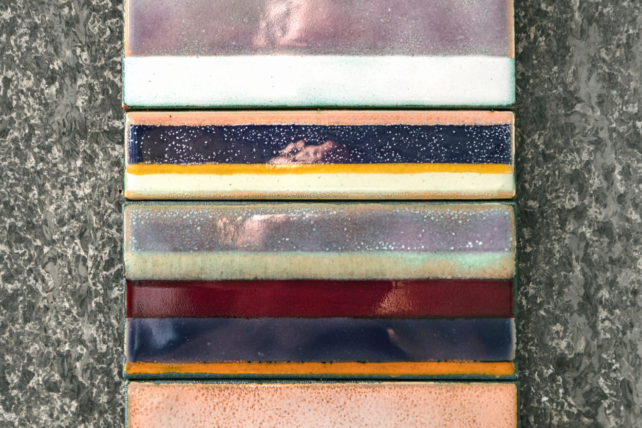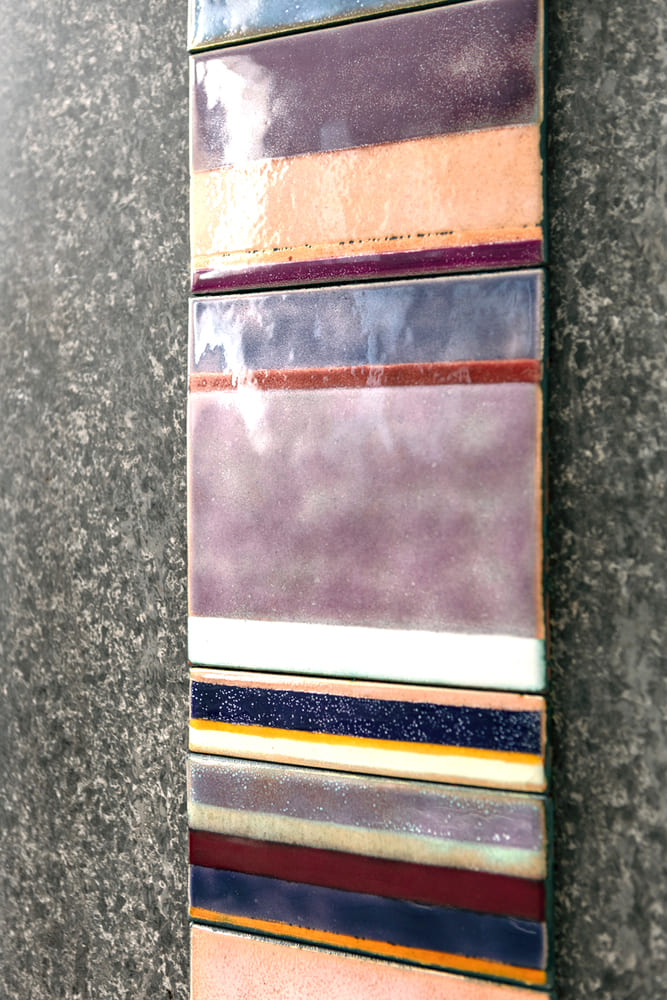 VIOLETTE LINIEN (Líneas violetas) | esmalte de joyería, vidrio + cobre | 120 x 18 x 0,5 cm | paramento para el ambón | Martin-Luther-Kirche Borken | Alemania | Anna Gawronski | 2019