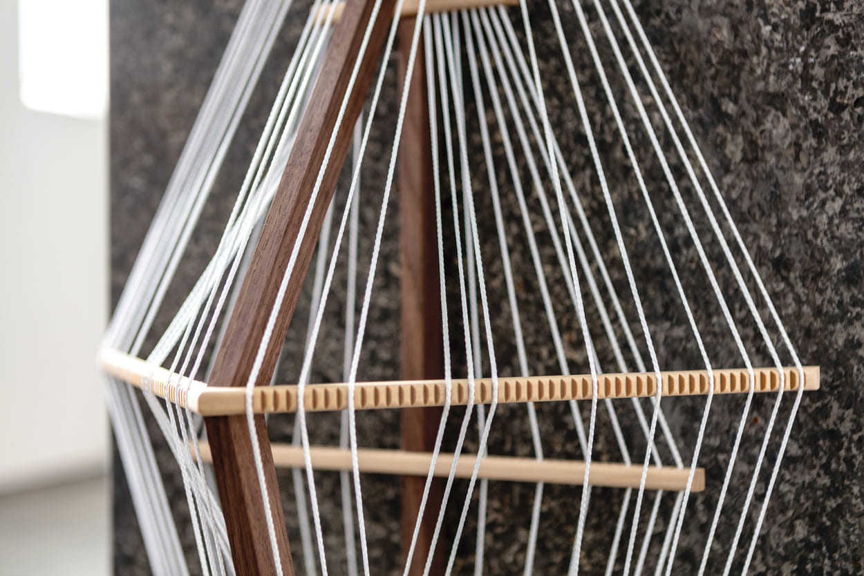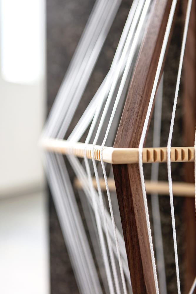 WEISSE LINIEN (Líneas blancas) | objeto, madera de nogal + arce + nailon | 90 x 40 x 20 cm | paramento para el ambón | Martin-Luther-Kirche Borken | Alemania | Anna Gawronski | 2019