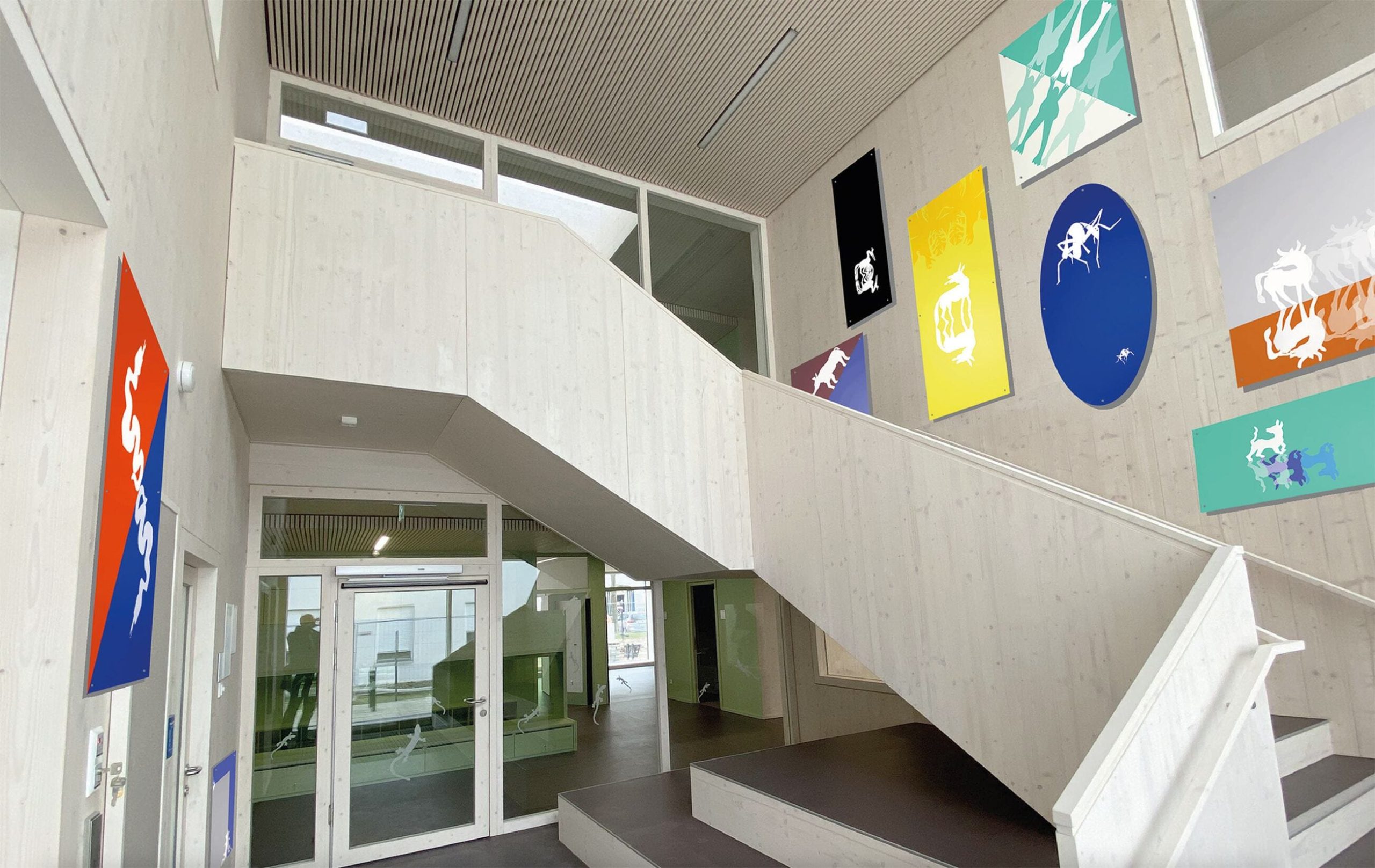MITWISSER UND BEGLEITER | concurso de arte en el espacio arquitectónico | 1. premio | Modulare Kita-Bauten Berlin | Alemania | desarrollado con SEPIA Professionals | 11 objetos de cristal pintado y un juego de 11 cuentos | Anna Gawronski | 2023 -2024